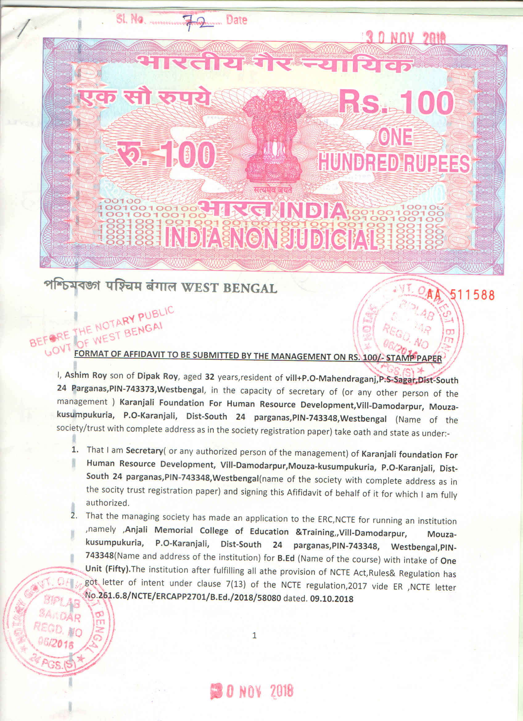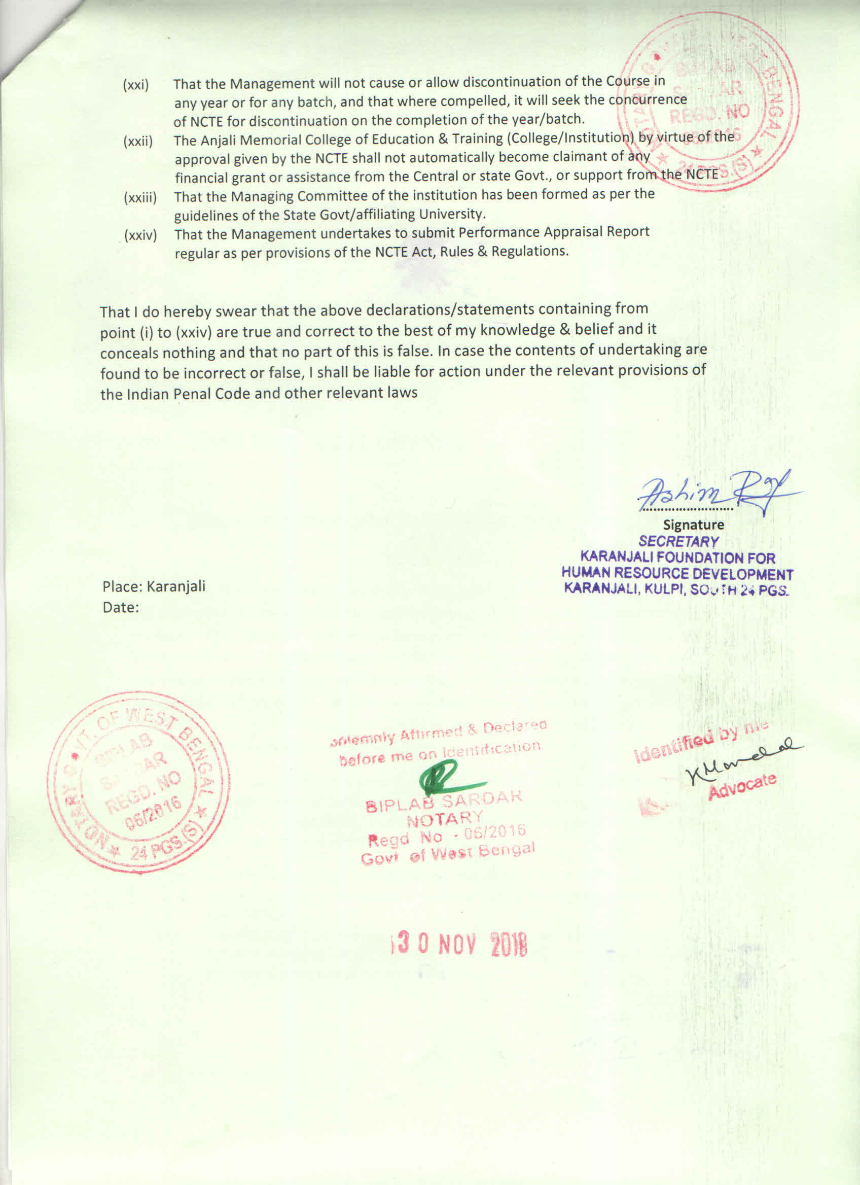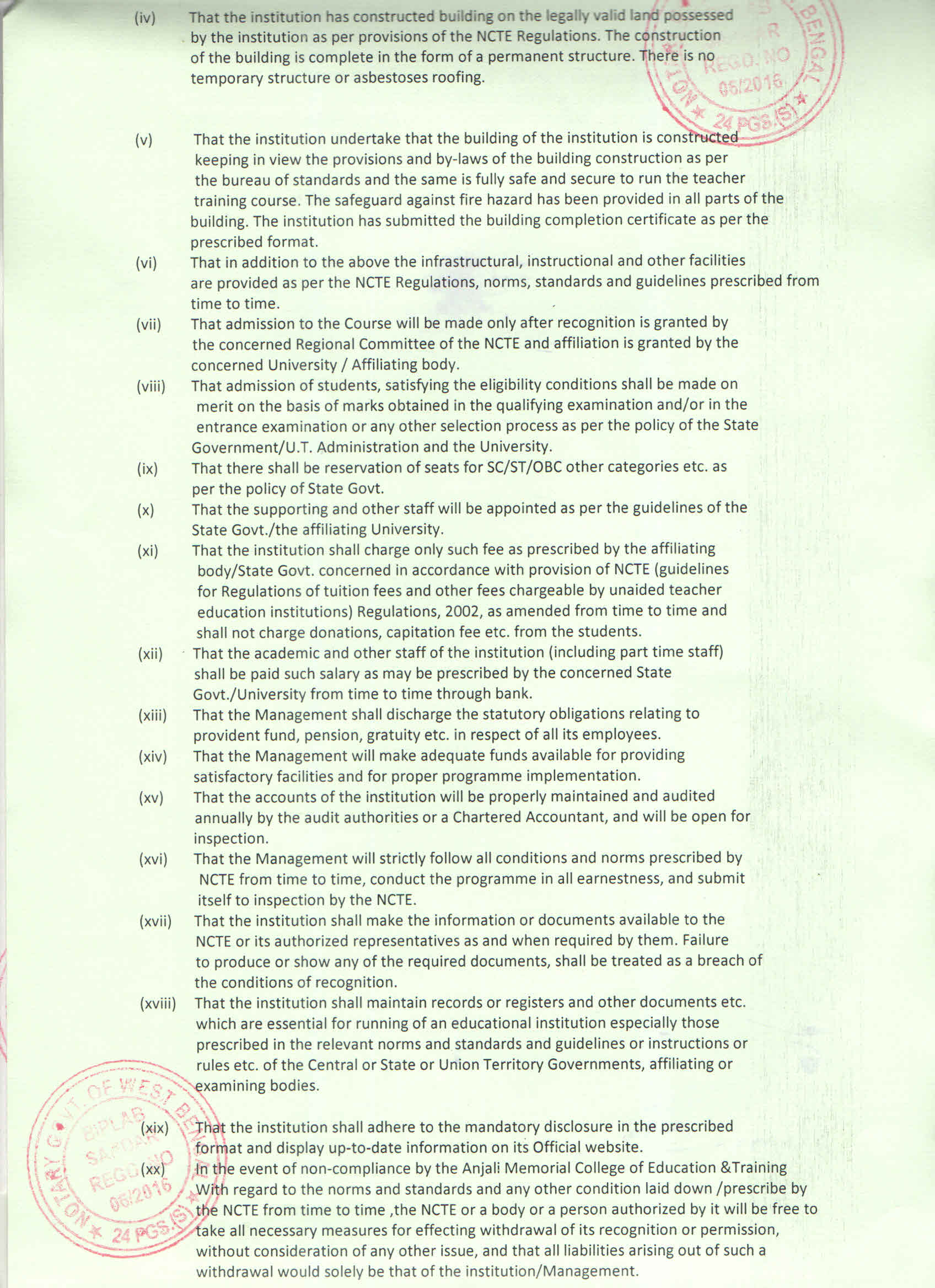 Admission Enquiry: Mob: 9804140787 & 9831646548 E-mail ID:  anjalimemorialttc@gmail.com