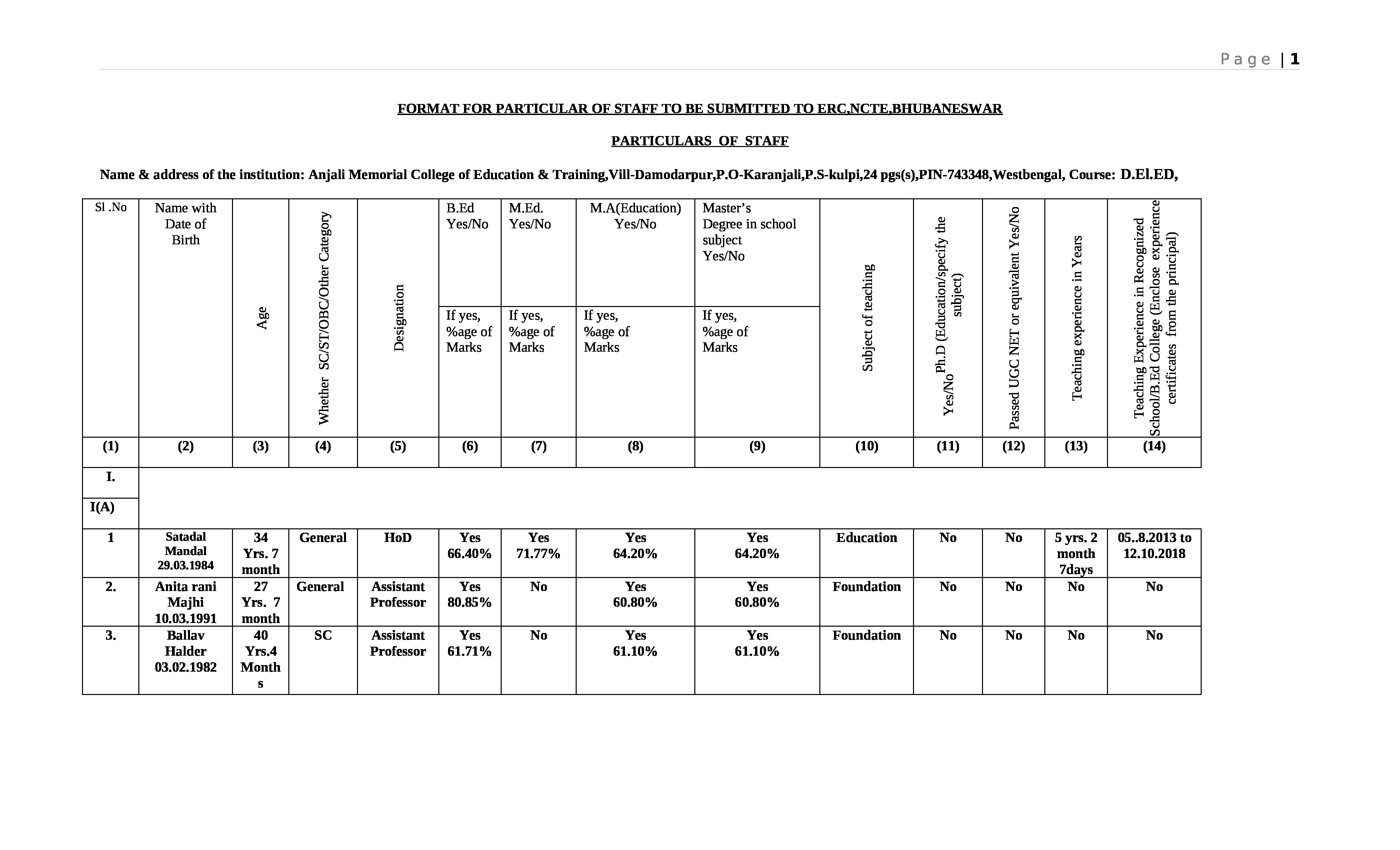 Admission Enquiry: Mob: 9804140787 & 9831646548 E-mail ID:  anjalimemorialttc@gmail.com